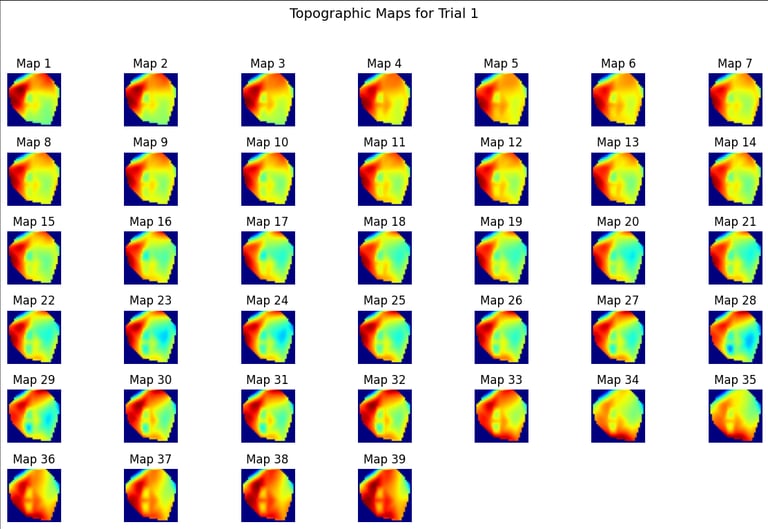 To preprocess the data the different EEG signals are divided into overlapping windows for sequential image generation. The channels can then be mapped to construct a 2D topographic image. There are two types of topomaps experimented on: RGB and greyscale to see how well the model handles the noise.